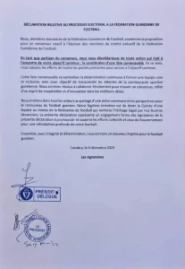 Coup de tonnerre pour le candidat au poste de président de la FEGUIFOOT Bouba Sampil, serait-il abandonné par ses soutiens? C’est dans une déclaration rendu public ce lundi 04 décembre 2023 que le Milo Fc et le Hafia Fc ont réaffirmé leur décision concernant une liste consensuelle sollicitée par les autorités, différent de celle établie par le collectif pour la défense du football guinéen à sa tête le premier responsable du club ASK.