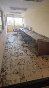 L’immeuble abritant la radio Nostalgie situé dans la commune de Kaloum, à Téminétaye précisément a été fortement touché par l’explosion du dépôt de carburant. Des vitres brisées, des portes fortement endommagées tel est l’image après l’explosion.