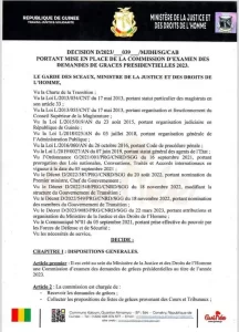 Alphonses Charles Wright ministre de la justice et des droits de l’homme vient de mettre en place une commission qui sera en charge d’examiner les demandes de grâce présidentielle au titre de l’année 2023. Il l’a fait savoir dans une décision rendue publique.