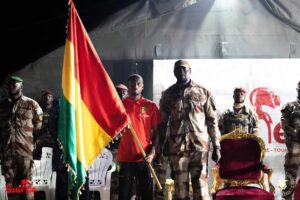 En prélude à la Coupe d’Afrique des Nations (CAN 2023) qui se tiendra du 13 janvier au 11 février 2024 en Côte d’Ivoire, le Syli national de Guinée a reçu officiellement ce vendredi 29 décembre 2023 des mains du Chef de l’État le tricolore national. C’est au Quartier général (QG) des Forces spéciales à Kalako dans la préfecture de Forécariah que l’équipe conduite par l’entraîneur Kaba Diawara et son adjoint sous la houlette du ministre de la Jeunesse et des Sports, que s’est tenue la cérémonie de remise du drapeau.