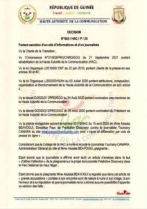 à la uneL’actualitéSociété Urgent : le journaliste Toumany Camara interdit d’exercer son métier pendant 3 mois, son site aussi suspendu de admin Last updated 28 Avr, 2025 Partage Partage