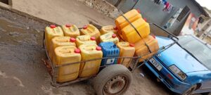 «Dès le matin vers 4h 5h on se réveille pour aller chercher de l’eau dans les robinets ou aux forages avec nos bidons de 25 litres et on vient revendre à la population. On paye 10 bidons de 25 litres à la pompe ou aux forages 1000 FG et nous revenons un bidon à 1000 FG. Donc vous voyez il y a un peu d’intérêt pour nous et chaque charette on a 10 bidons de 25 litres on sillonne les quartiers pour revendre et avoir nos intérêts. Parce qu’il y a le problème de l’eau ici à Coleah donc il faut nous sinon c’est difficile d’avoir de l’eau. C’est nous qui transportons des bidons de l’eau même chez certains patrons. Parfois certains font des commendes avec nous, parfois on fait la vente dans les quartiers. Donc c’est un travail très difficile mais comme on n’a pas d’autres possibilités, on se contente de ça qui est mieux pour nous que de voler», indique t-il