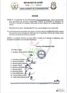 Cette décision de la Haute autorité de la communication intervient quelques après la suspension du site d’information guinee360 pour les mêmes motifs.