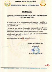 à la uneL’actualitéSociété Référendum du 21 sept: la HAC prévient, “seuls les détenteurs de la carte professionnelle seront autorisés à couvrir le scrutin” de admin Le 11 Sep, 2025 Partage Partage