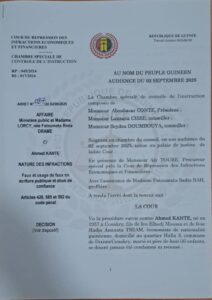 La Cour de répression des infractions économiques et financières (CRIEF), à travers la chambre spéciale de contrôle de l’instruction, à l’issue de son audience du 02 septembre dernier, a infirmé l’ordonnance de non-inculpation N 096 rendue le 24 avril 2025 à l’encontre de l’ancien Directeur Général de la SOGUIPAMI. Elle a aussitôt ordonné son inculpation du chef d’abus de confiance, prévu par l’article 428 du code pénal.
