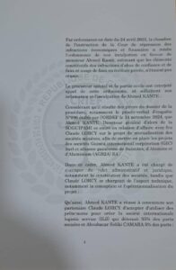 La Chambre spéciale de contrôle de l’instruction de la CRIEF soupçonne M. Ahmed Kanté d’avoir détourné à son profit le projet minier GIC/AGB2A, élaboré initialement en partenariat avec feu l’homme d’affaires français Claude Lorcy. Les juges ont retenu l’existence d’indices graves et concordants laissant présumer un détournement du projet et de ses bénéfices, en violation des engagements initiaux.