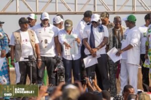 Ce meeting, initié par le Directoire régional de campagne de la GMD à Conakry, a été rehaussé par la présence de plusieurs membres du gouvernement. Parmi eux, Dre Diaka Sidibé, marraine de l’événement, accompagnée de ses homologues Mourana Soumah, Économie et Finances et Moussa Moïse Sylla de la Cultureet Artisanat.
