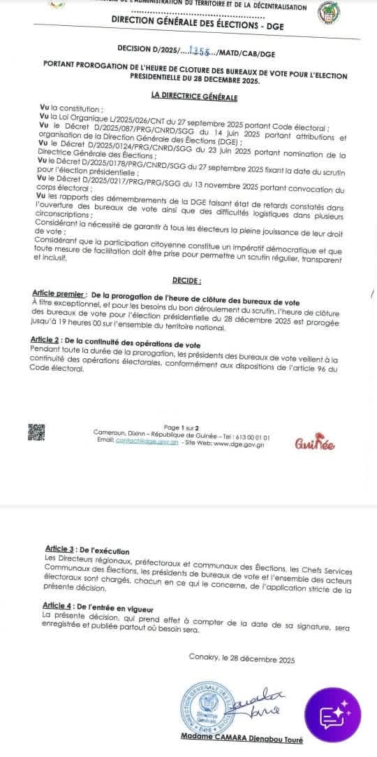 à la uneL’actualitéPolitique Dernière minute : la fermeture des bureaux de vote prolongée jusqu’à 19h de admin Le 28 Déc, 2025 Partage Partage